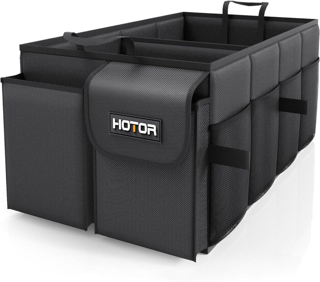 The HOTOR trunk organizer provides a compact and simple solution. With two large compartments and six mesh pockets, it keeps groceries and tools organized without taking up excess space. A reinforced base and durable fabric offer dependable support for lighter loads.